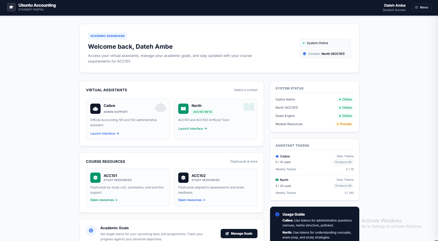 A Spring Boot platform combining student support, two AI assistants, lecturer/admin operations, and analytics for ACC101/102.